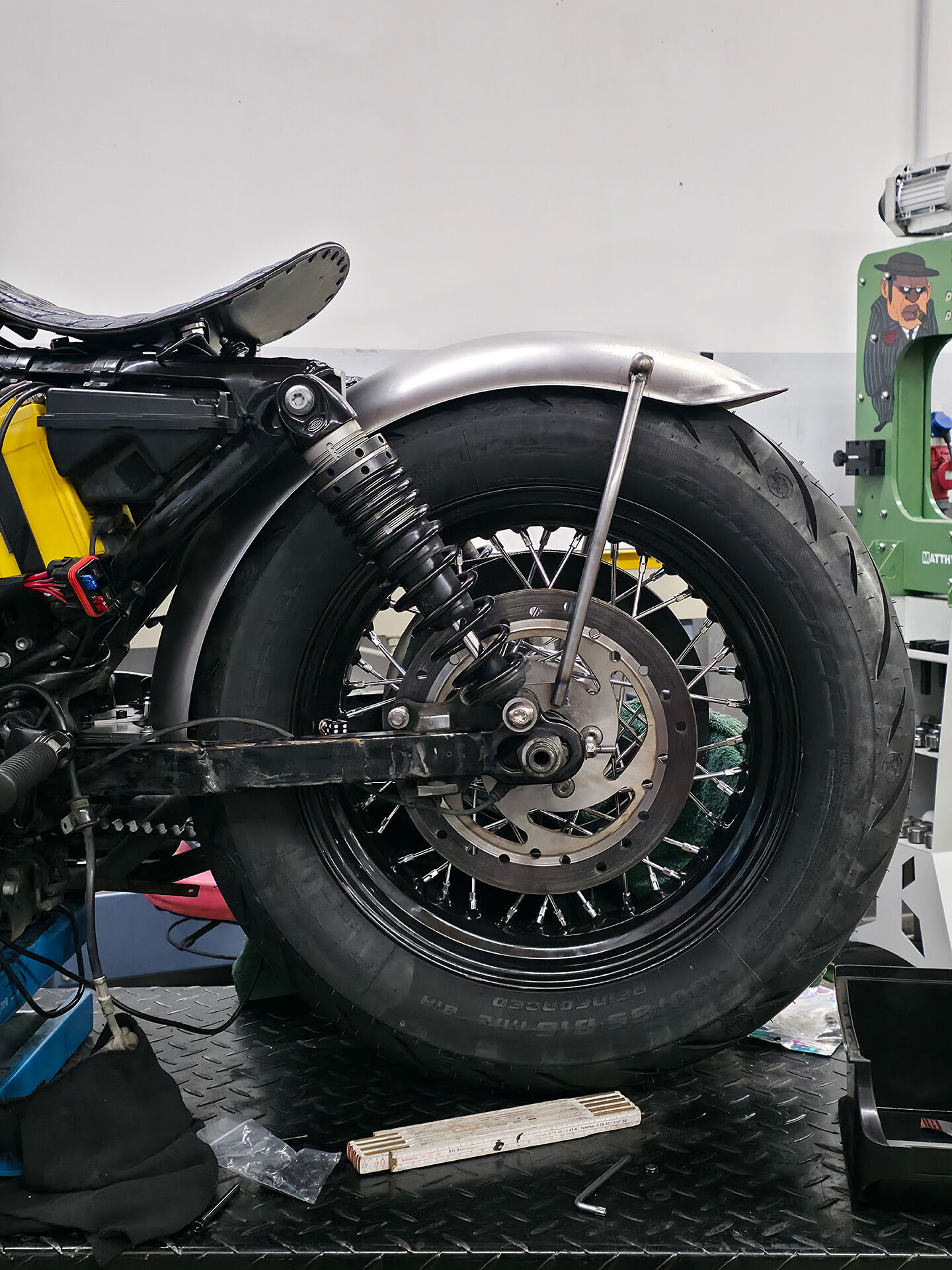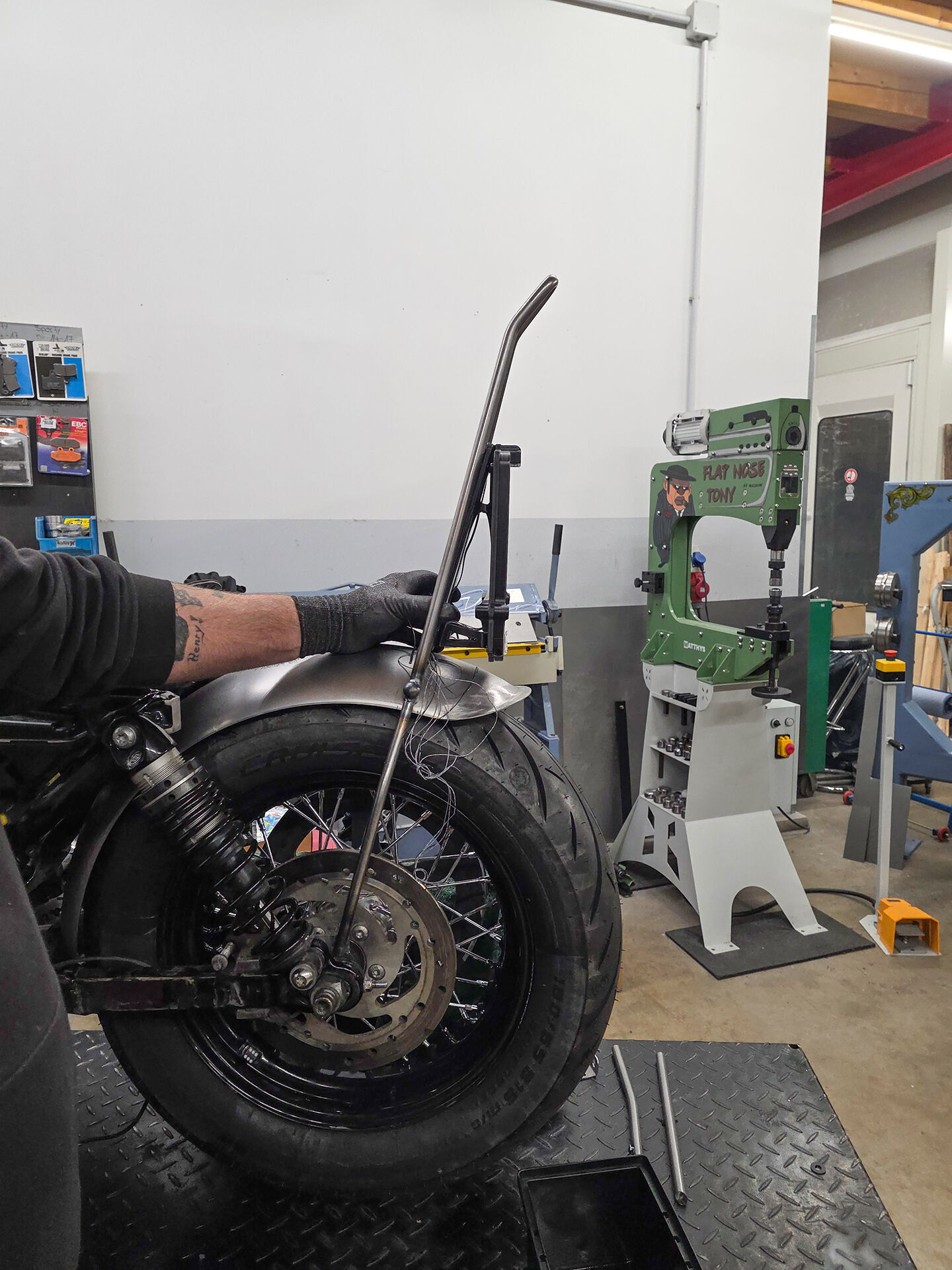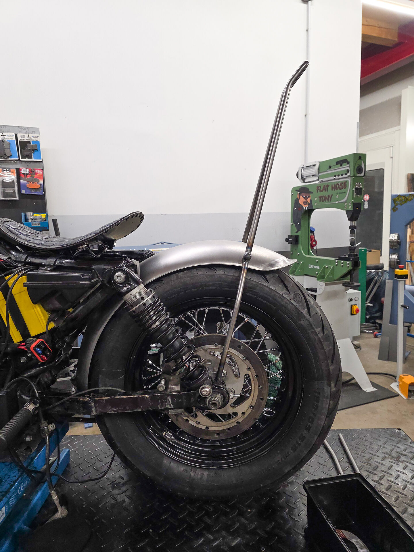 Fender Position Final festgelegt und Winkel der Sissybar. Bungs verschraubt.