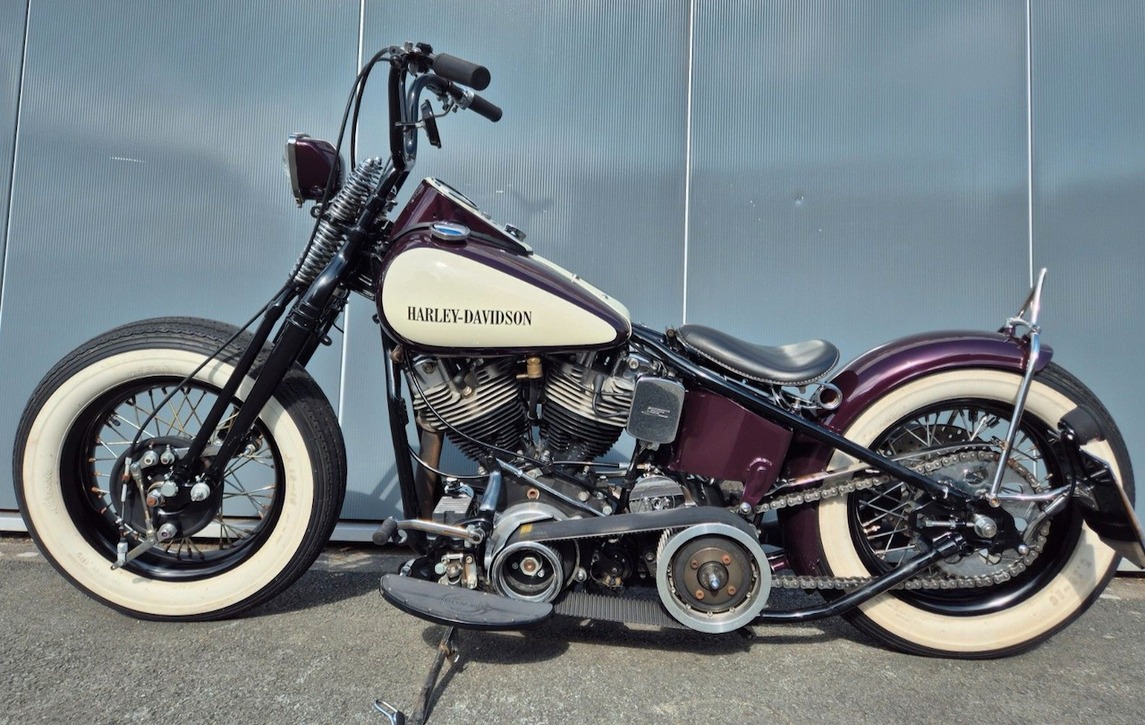Nachdem ich mich an meiner Fat Boy S "ausgetobt" habe und die jetzt schön als "daily" dasteht, hatte ich Bock augf einen Klassiker im Bobber Style. Klar war das es Wishbone Rahmen und Springer werden soll. Welcher Motor war "egal" es wurde jetzt letztlich ein Shovelhead. Umbau von der Bike Farm in 2013.  Ich schaue mal ob sie so bleibt. Tendenziell würde ich sie etwas strippen, Dashboard weg damit der Tank cleaner aussieht und eine andere Farbe. Ich liebe "rot Brilliant Effekt" als Farbe, heute sagt man da wohl eher "Apple Candy red" dazu.In den Klarlack kommen dann winzige Prismenflakes beigemischt die dann, je nach Sonnenlicht, in spektralfarben funkeln wie kleine Sternchen. Ohne Sonne sind die unsichtbar.