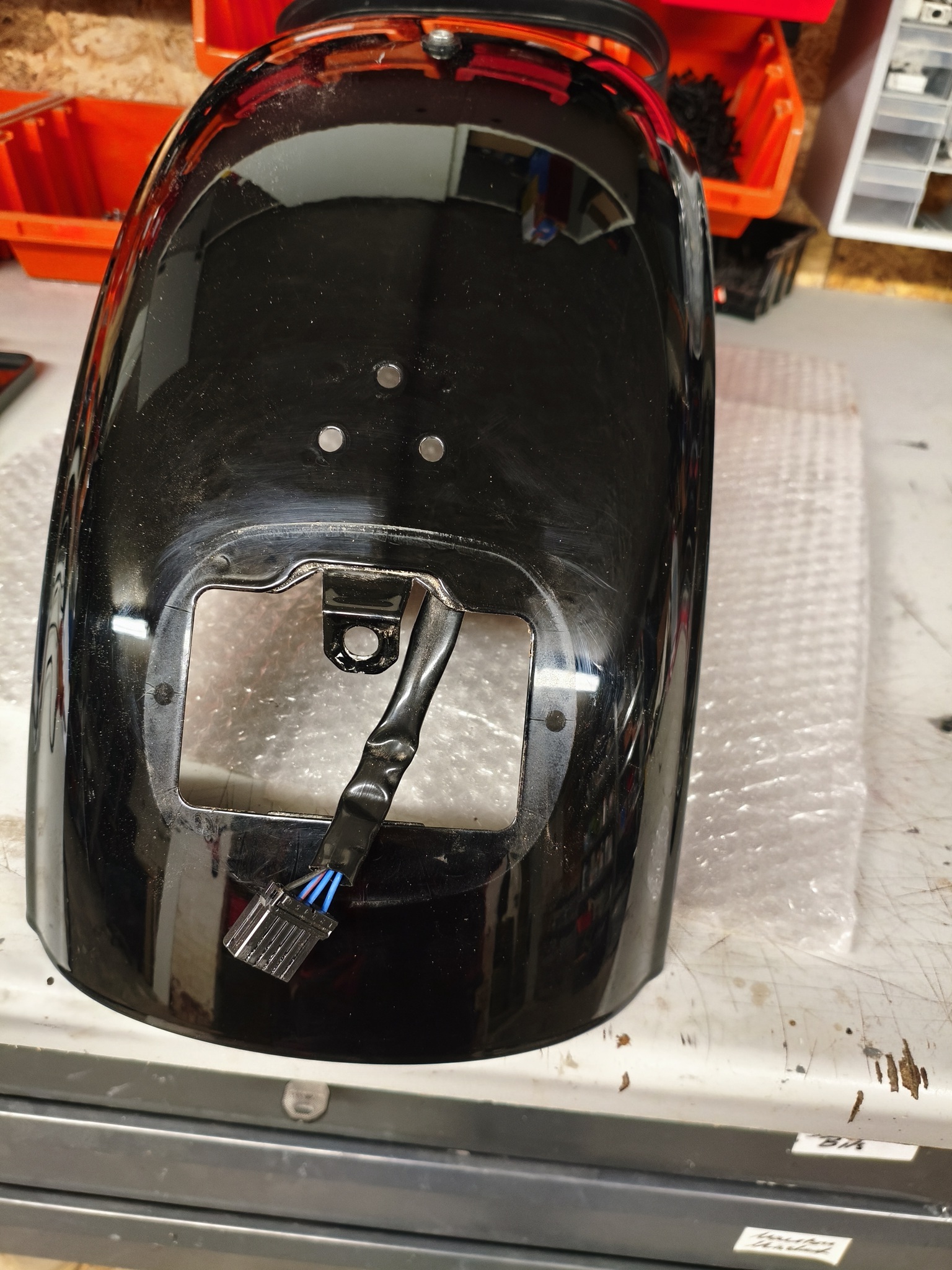 Es ist noch nicht alles da, deswegen kann ich nur Vorbereitungsarbeiten machen bzw. die Theorie klären. Es fehlen noch die Winglets und der Mount-Adapter, der das Rücklicht ersetzt und an den das Kennzeichen kommt.