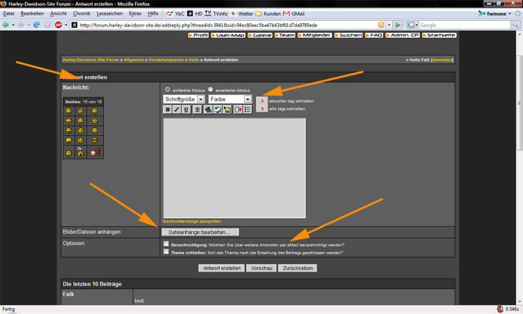 Dateianhangsfunktion ist komplett neu. Ich habe die alte Funktion komplett entfernt, aber die Anhänge auf die neue Funktion übertragen; es gehen also keinerlei Anhänge verloren. Ich habe sie außerdem bewusst als "Bilder/Dateien anhängen" gekennzeichnet und einen Link auf eine Bildbearbeitungssoftware eingefügt (kommt demnächst automatisch), damit neue Benutzer sofort wissen, wo sie hinmüssen und welche Software ihnen helfen kann. Die neue Funktion ist fehlerbereinigt, kann aber nicht mit der gleichzeitigen Erstellung mehrerer Beiträge umgehen. Heißt: wenn ihr Bilder oder Dateien hochladet, schreibt nicht während des Uploads einen weiteren Beitrag, weil sonst die Bilder dort angefügt werden. Da kann ich leider nichts dran ändern. Immerhin funktioniert die Funktion diesmal fehlerfreier als die letzte, die immer mal wieder zu Schwierigkeiten beim Anhängen von Dateien führte. Daher habe ich mir auch die Mühe gemacht und die letzte Funktion komplett entfernt.