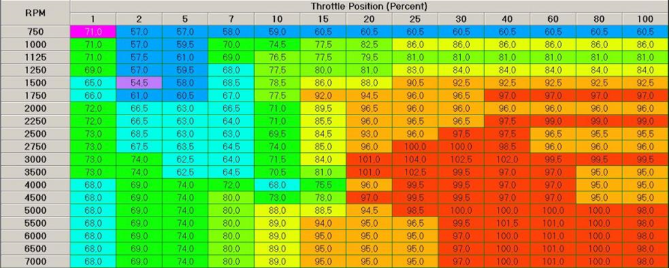 Das Werk hat sie durch Messung mit einem Probemotor ermittelt. Hier mal ein Beispiel, wie so eine Tabelle aussieht = Throttle Position!"